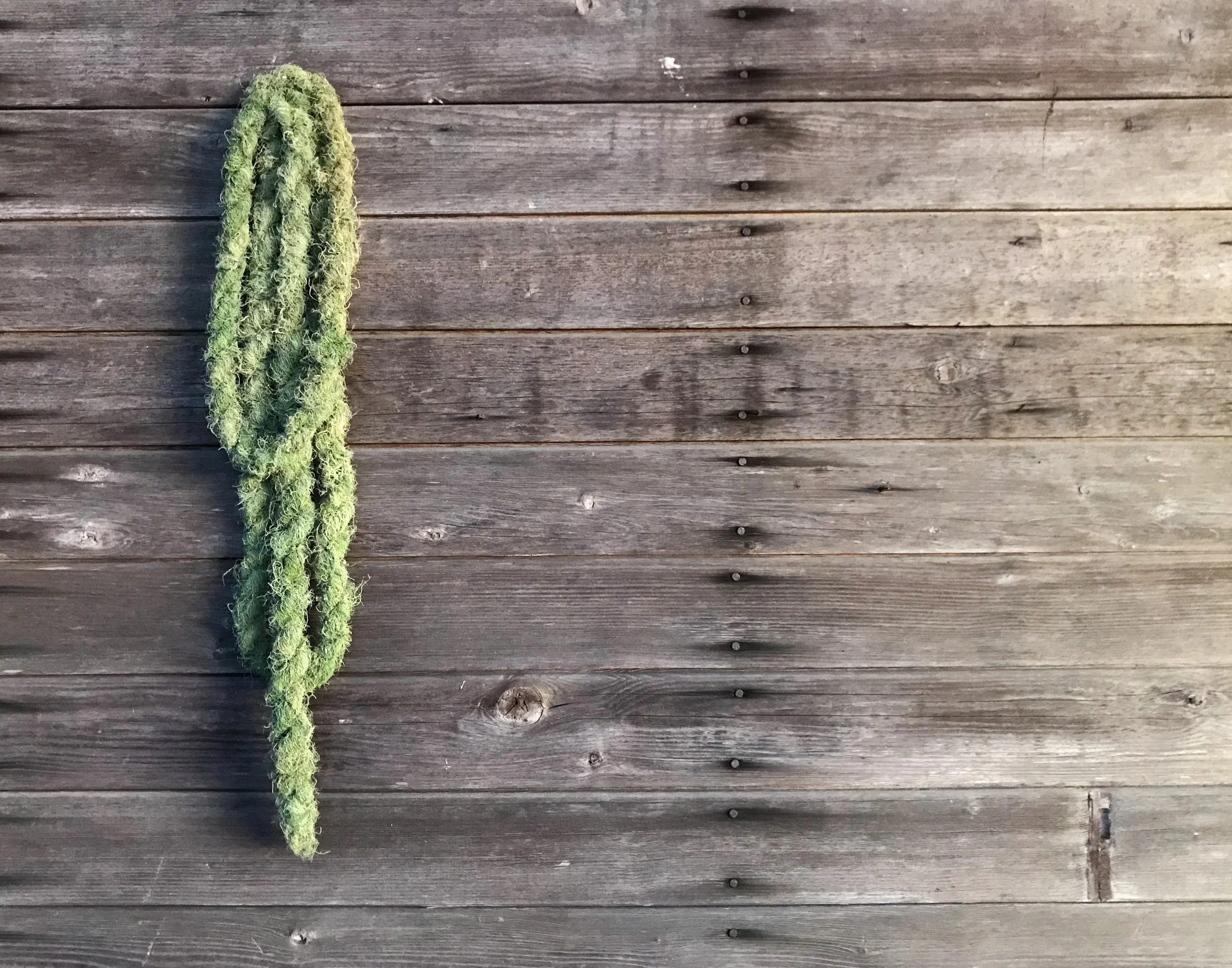 Created from long strands of fallen Usnea sp. lichen, these ropes were sited in carefully selected old oaks. The two lichen ropes were intended to be living artworks, made of material gathered from site, transformed, and returned to site. As the California weather shifts from winter rains to fog to summer drought, the ropes come alive or go into dormancy just as the lichen do.